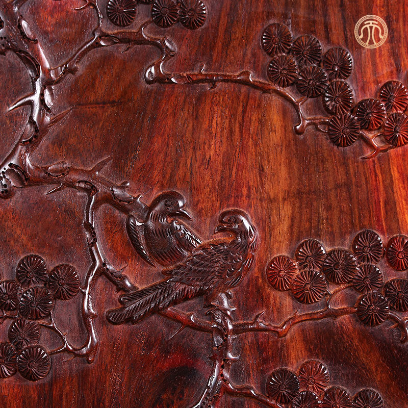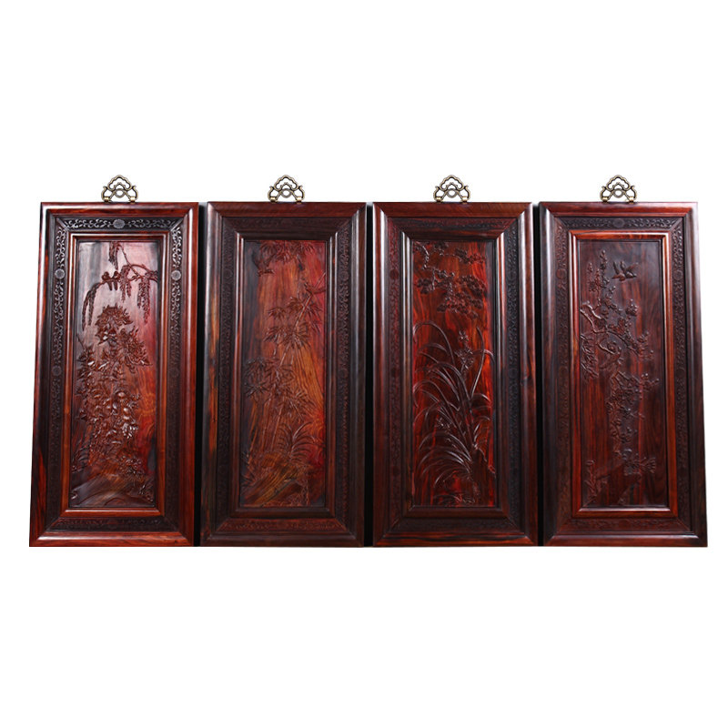 Tianzong big red rosewood four seasons hanging screen mahogany spring, summer, autumn and winter wood carving pendant rectangular whole material gift collection