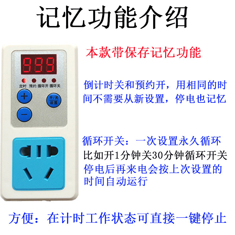 Fish tank circulation pump intermittent circulation switch countdown electric vehicle charging automatic power off timer socket