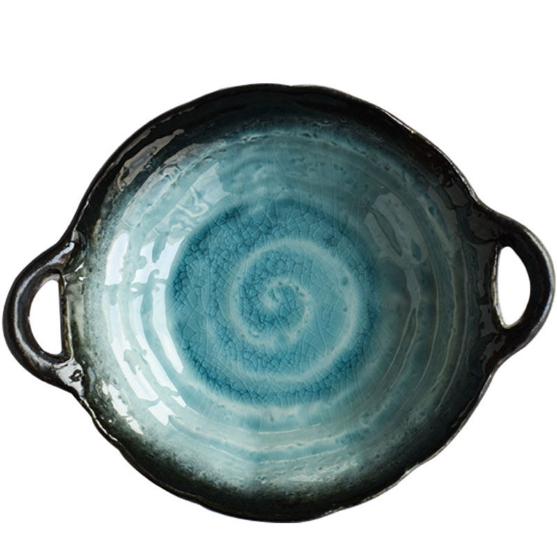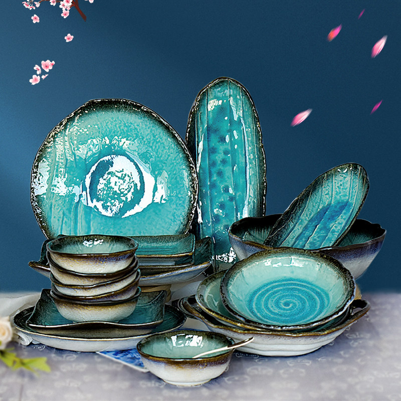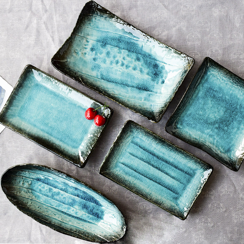 Japanese Turkey blue binaural plate Japanese household sushi fruit plate Exquisite creative simple plate tableware