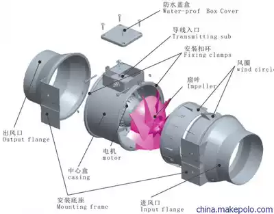 New product Hongguan round duct fan 250P 10 inch kitchen exhaust fan strong exhaust fan Industrial ventilation fan