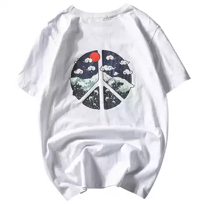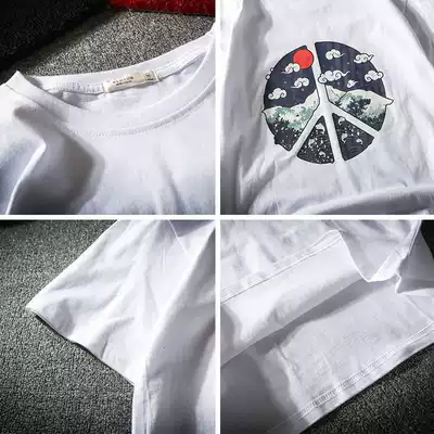 Korean version of Japanese men's T-shirt short sleeve print round neck casual slim T-shirt half sleeve clothes men's base shirt tide