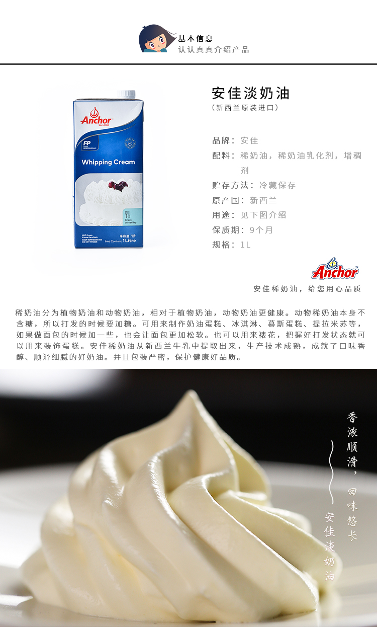 New Zealand Imported Antya Milk Oil Animal Sex Rare Cream Cake Framed Fresh Cream Egg Tart Raw 1L