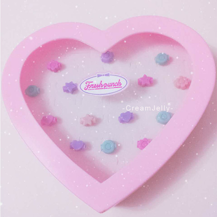 Pink love plastic jewelry storage box ring earrings ear pins jewelry box love soft girl jewelry box