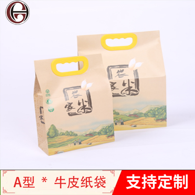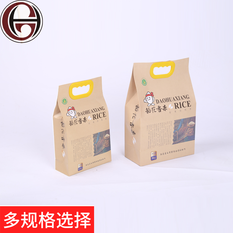 Kraft paper rice bag tote bag 10 catties rice bag Wuchang rice food packaging bag literary paper bag wholesale customization