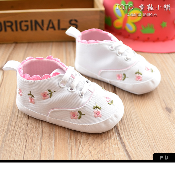 Spring and autumn new baby shoes cover with fine rust flowers baby 0-6-12 months school walking shoes 0-1 years old soft bottom non-slip