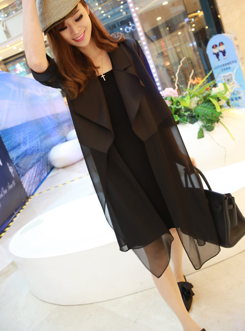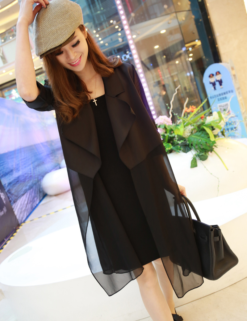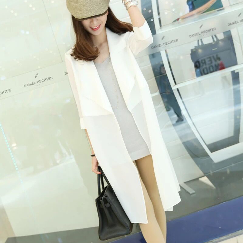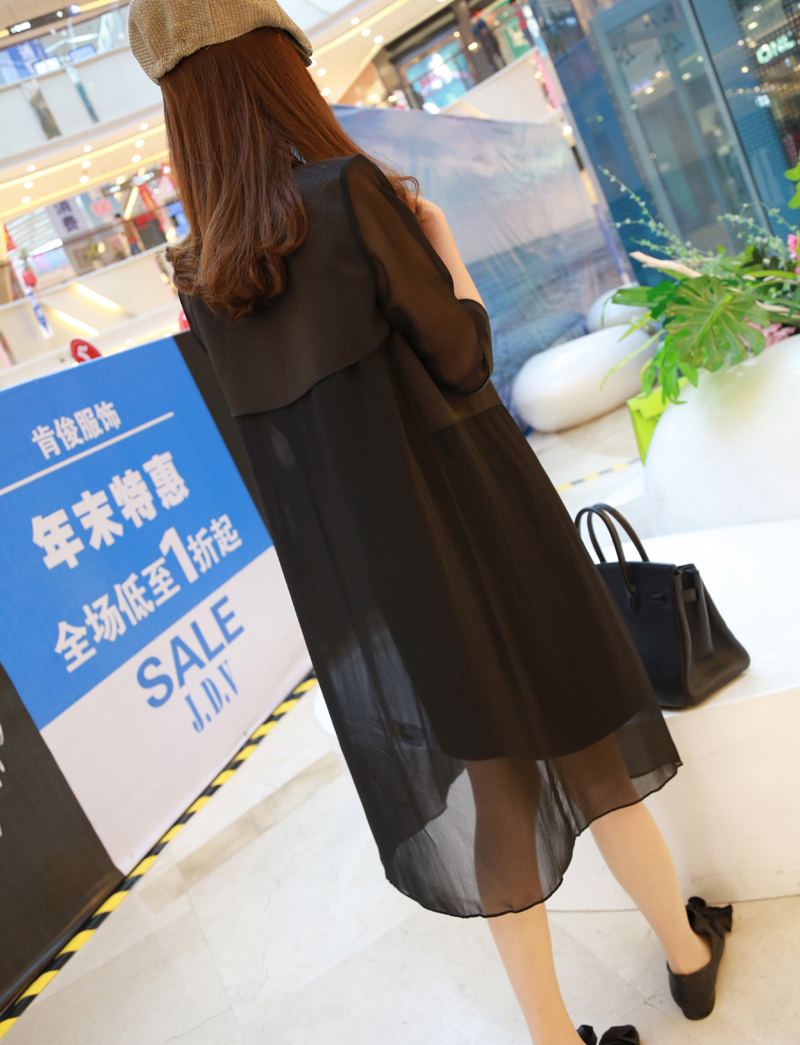 Spring and autumn chiffon windbreaker coat women's fashion thin medium and long version of the large size thin casual tulle coat 2021 new