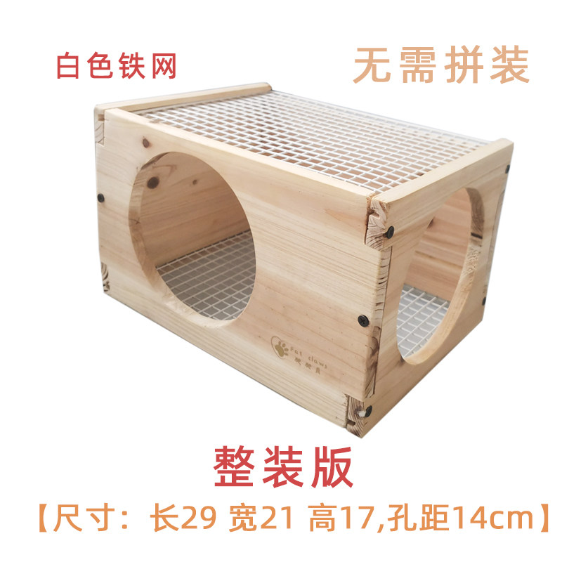 Creamy white color transparent rice white moose MZP14 round hole door house MZP16 bark wooden house MZP26 black iron mesh wooden house-assembled and assembled black iron mesh wooden house log stairs assembled black