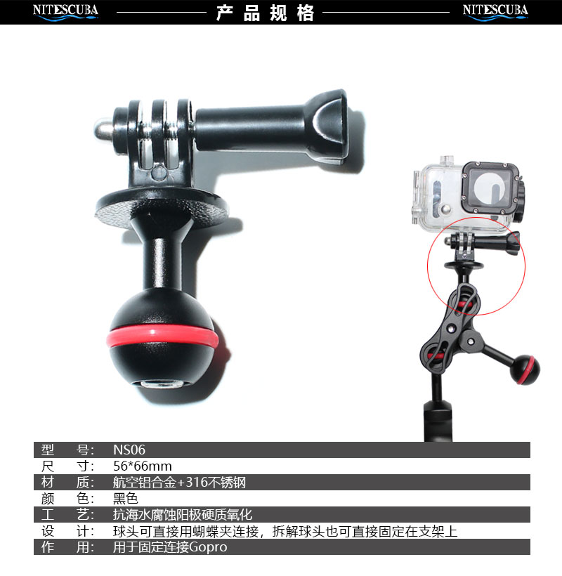 Diving Motion Camera Gopro Hero Switching Ball Head Base Small Ant Adapter Base Ball Head Swivel Bracket