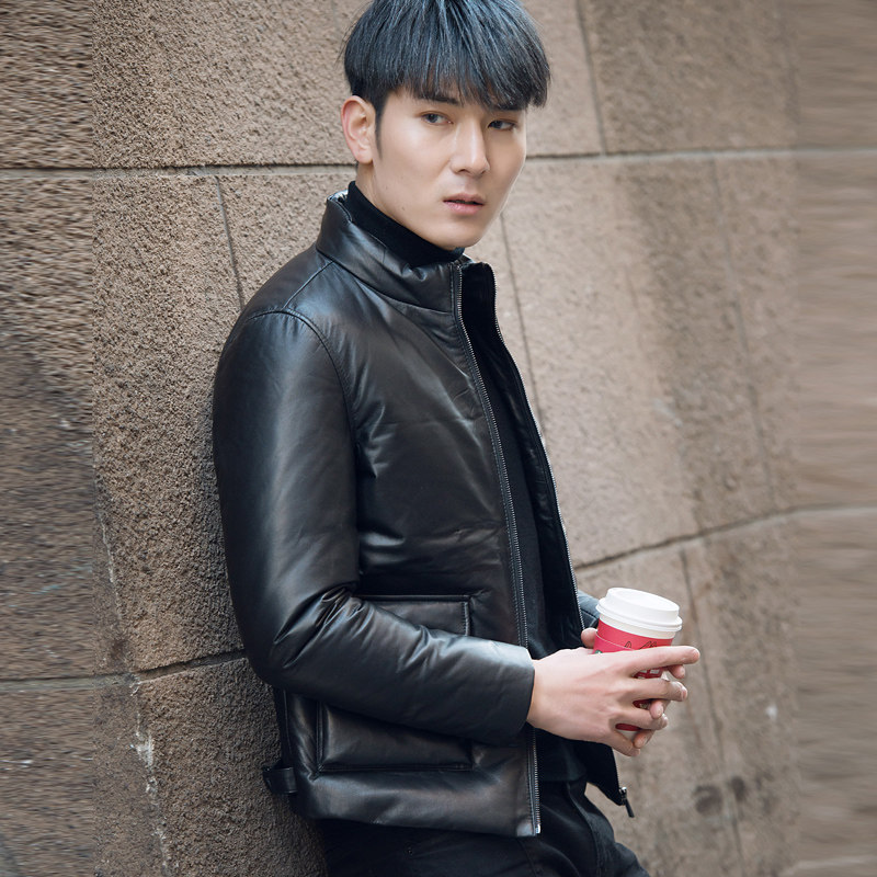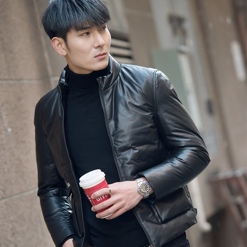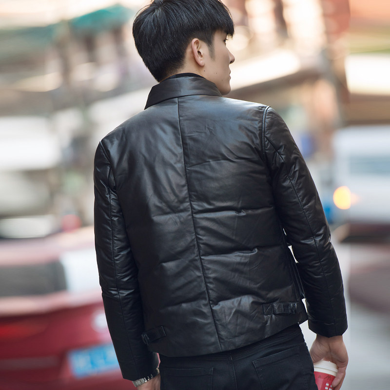 2021 autumn and winter leather leather down jacket men stand collar youth short fashion leather jacket Korean slim jacket
