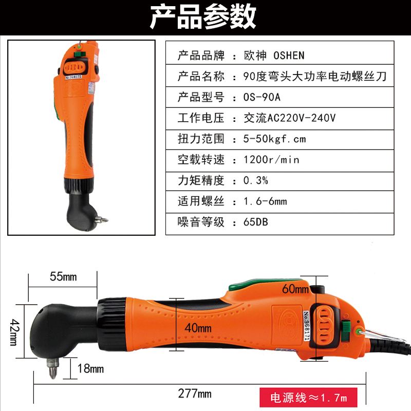 Oushen electric screwdriver 220V in-line 90 degree elbow electric screwdriver Household large torque electric screwdriver Industrial grade screwdriver
