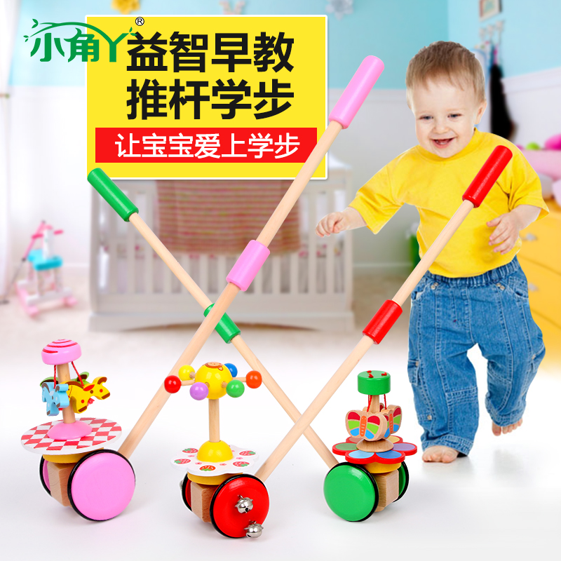 Children push and push music spiral turn single rod trolley Wooden infant baby hand push walker toy 1-3 years old