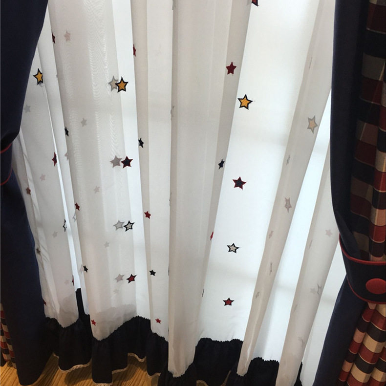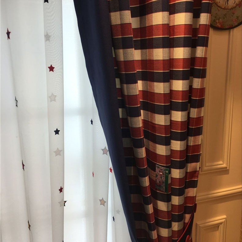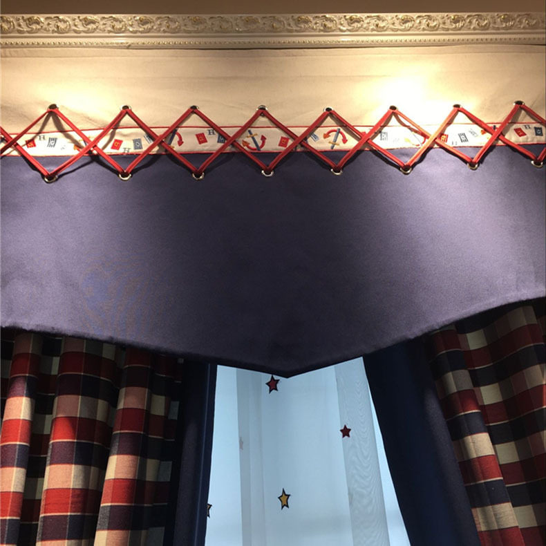 Cotton red and blue plate cloth Mediterranean pastoral style American children's room boy room bedroom window curtain