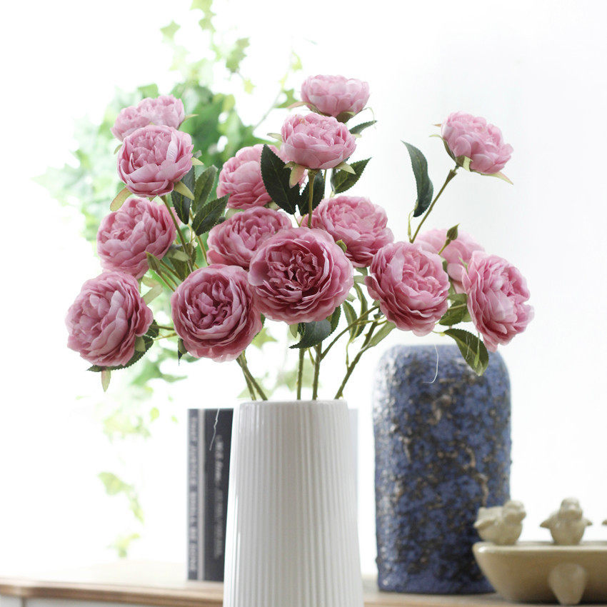 Simulation of three - headed peony flower roses 3 - head paeon medicine fake tea roses thousand layers of tea rose celebration simulation flower tea rose
