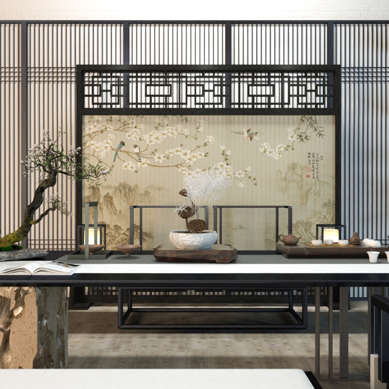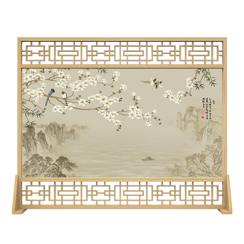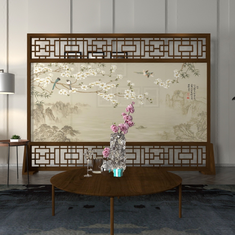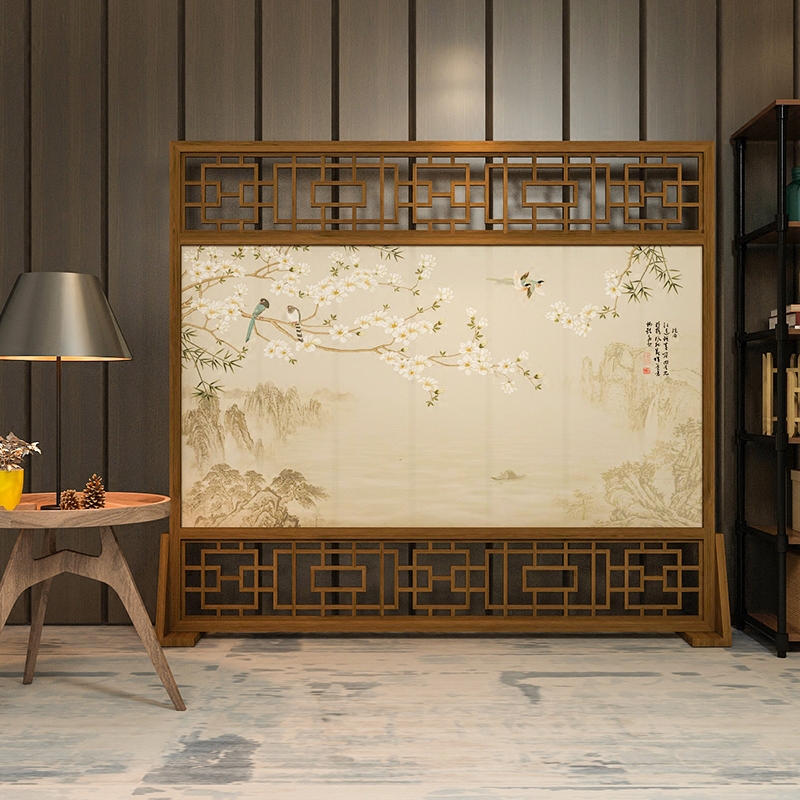 New Chinese solid wood hollow screen partition entrance fashion living room seat screen Dining room hotel semi-transparent yarn screen