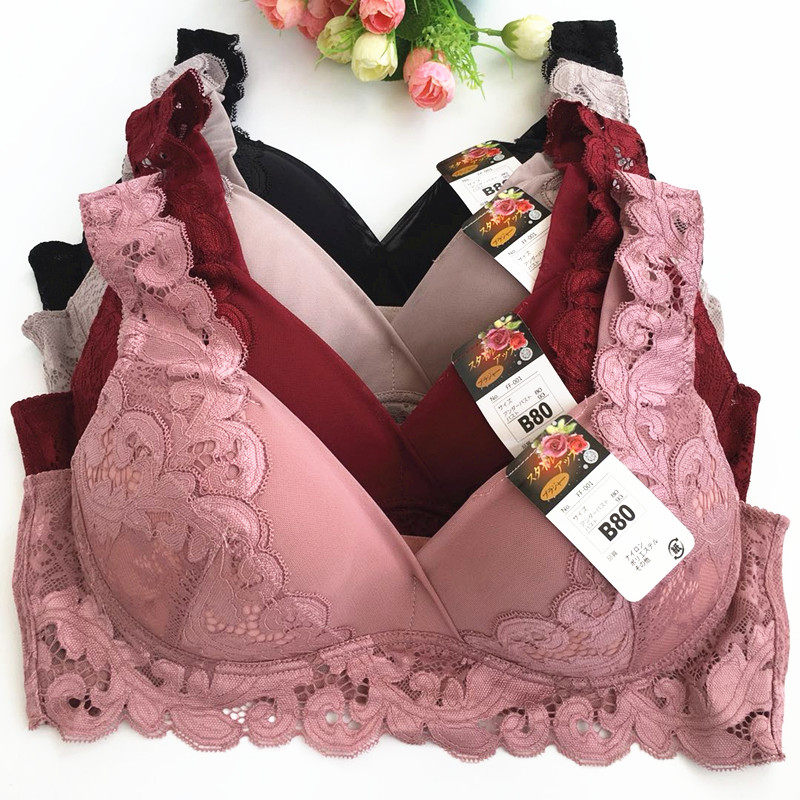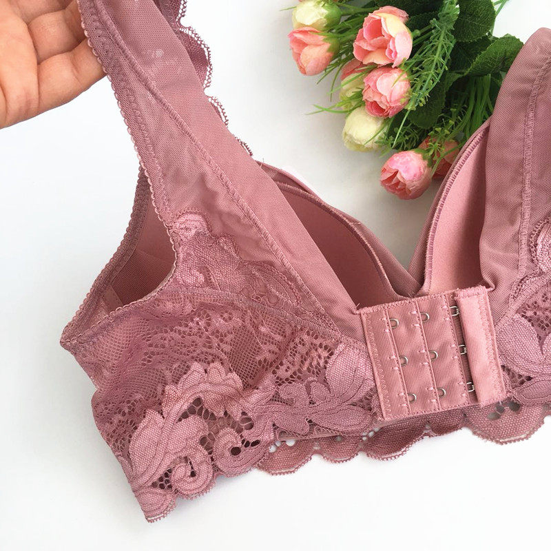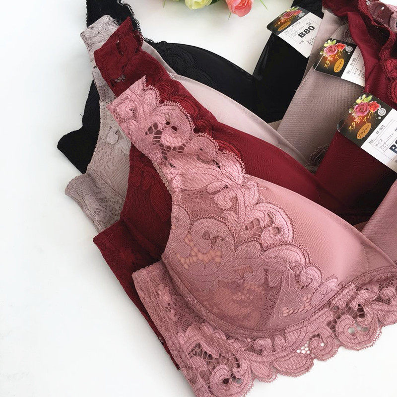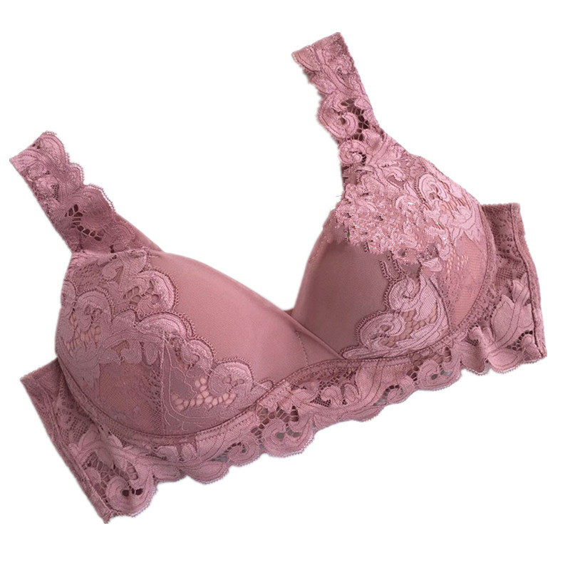 Embroidered no rims push-up bra double shoulder straps non-marking side milk fixed bra lace trim body comfortable underwear
