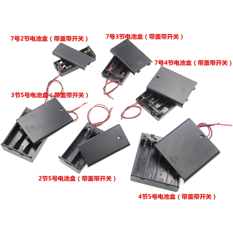Battery box five, five, seven, seven, 18650 with switch, with cover, battery holder 1, 2, 3, 4, 4, 5, 6, 8, 9V