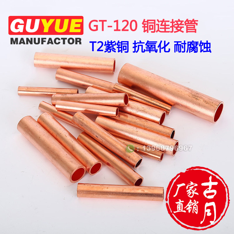GT-120mm copper connection pipe cable middle joint straight through wiring copper pipe through hole GT copper pipe