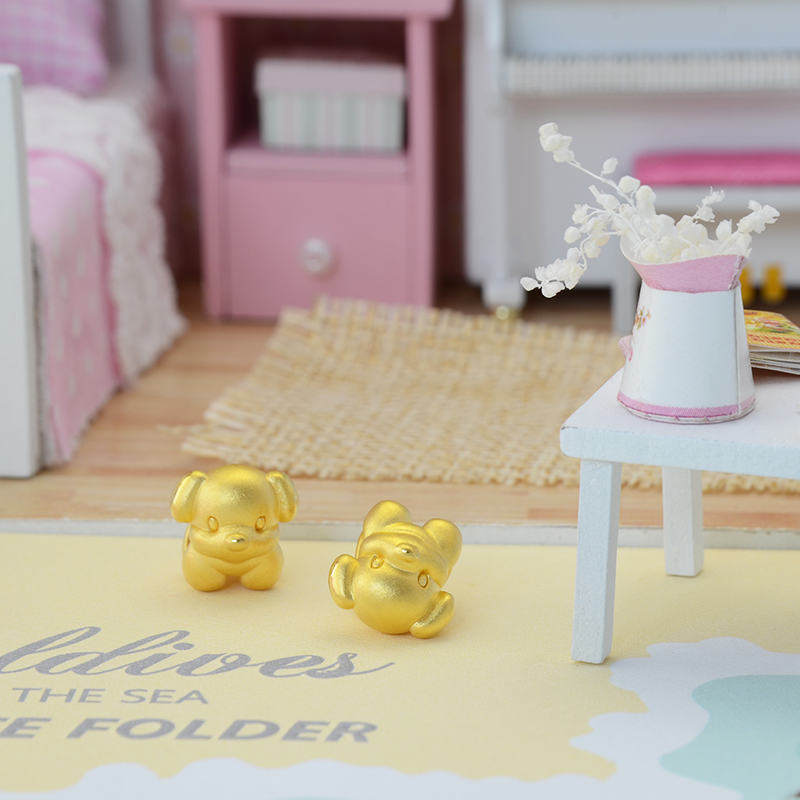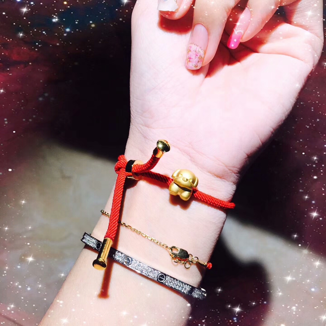 Gold 999 - life anniversary Shaw Golden Dog Transfer Pearl Gold 3D Hard Gold Full Moon Baby Bracelet