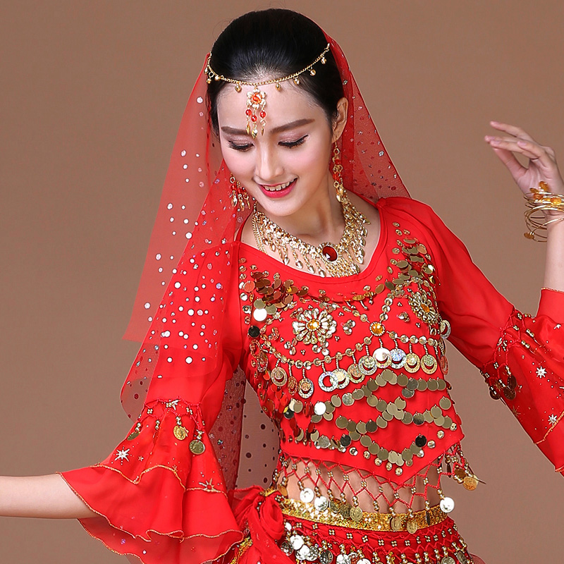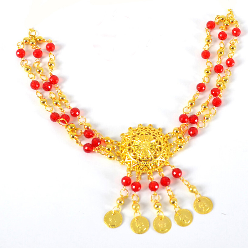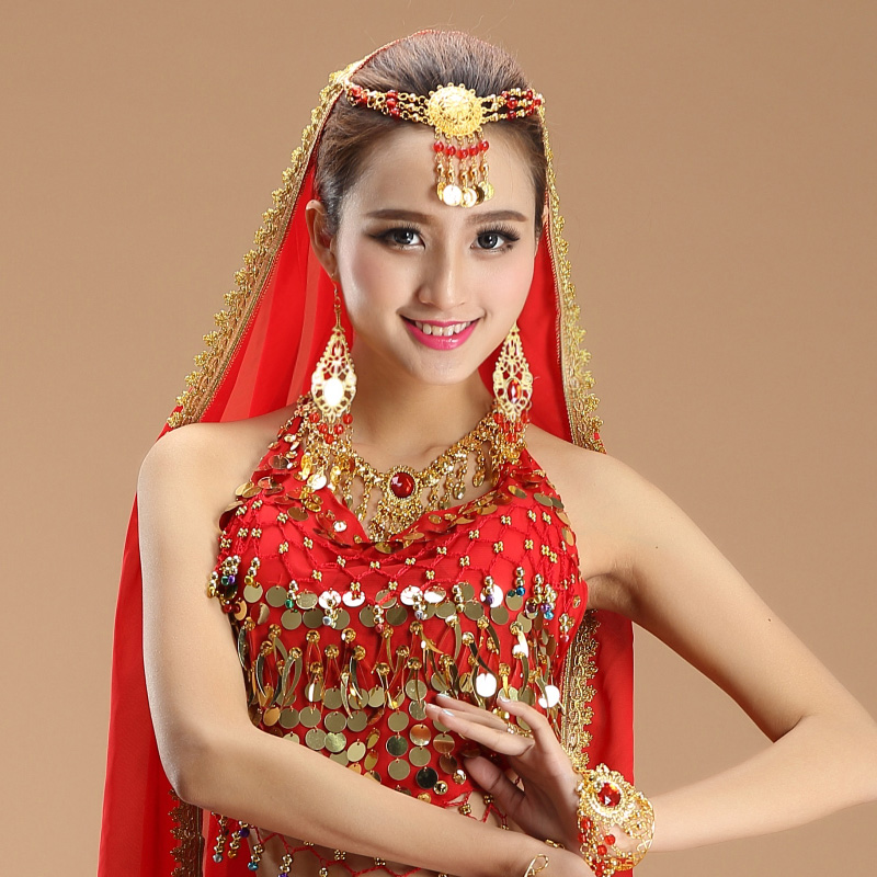 Belly Leather Dance Accessories Headwear Performance Performance Head Chain Red Drill Necklace Indian Dance Outfit Hair Stirrup Without Headscarf