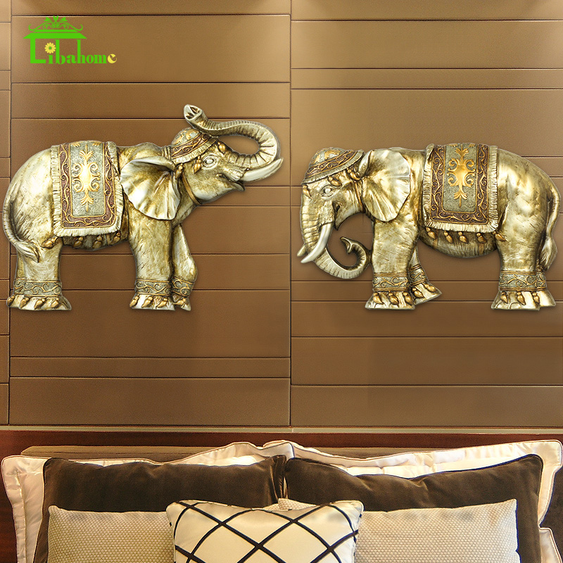 European style Thai elephant wall decoration three-dimensional pendant Hanging wall vintage wall hanging living room wall creative home decoration