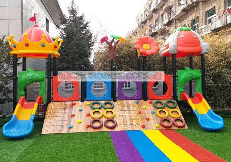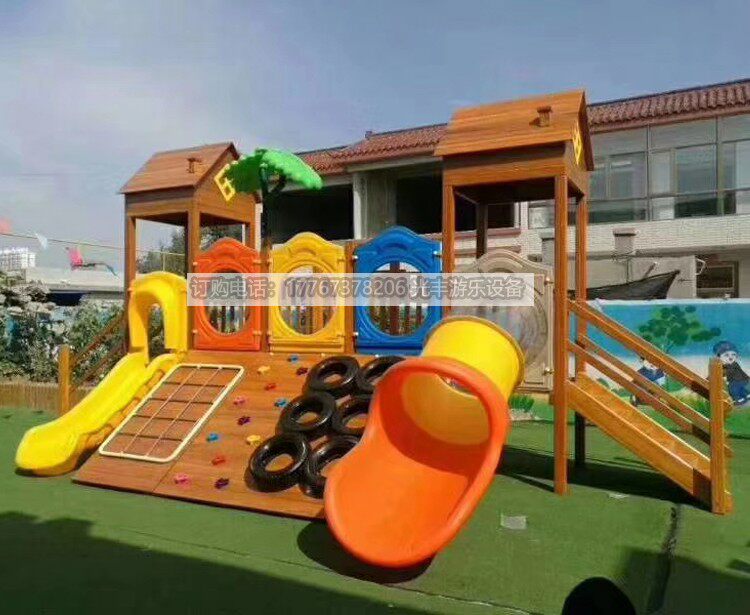 Custom Kindergarten Indoor outdoor large wood expansion equipment Children drill hole climbing net climbing frame slide combination