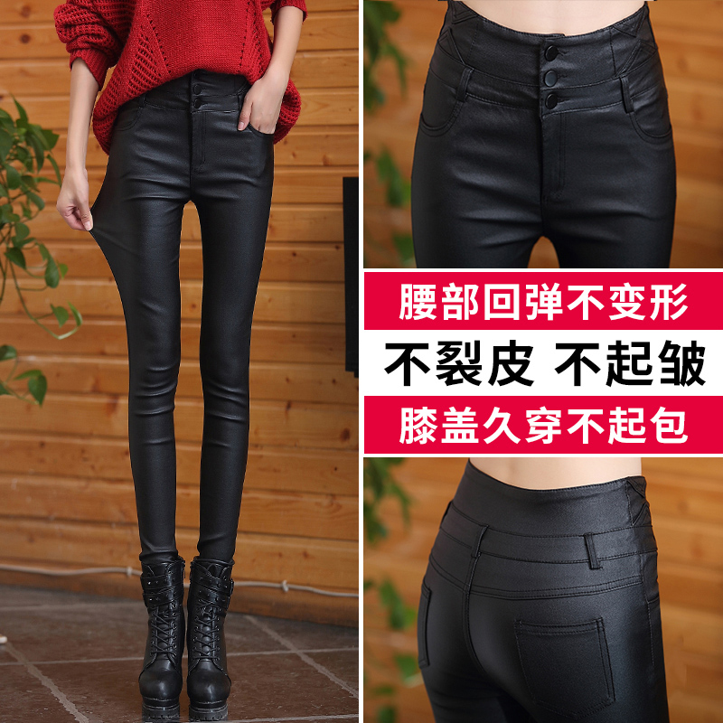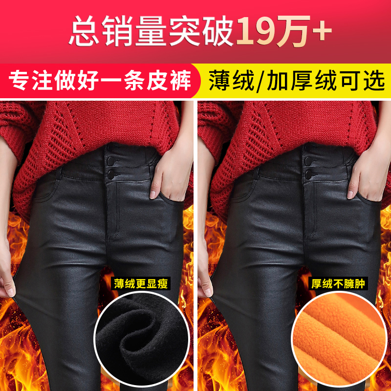 Leather pants Female exploits 2023 new high waist external wearing slim and small feet plus suede thickened tight fit underpants spring autumn and winter-Taobao