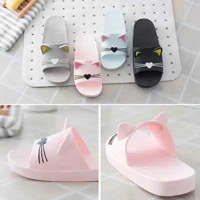 Plastic slippers female summer personality cartoon cat ears Korean version of cute couple home household indoor adult men and women shower