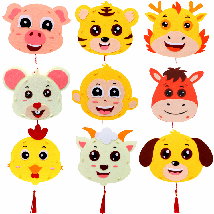 Mid-autumn children's handmade diy12 zodiac lantern ornaments kindergarten decoration non-woven animal luminous lantern