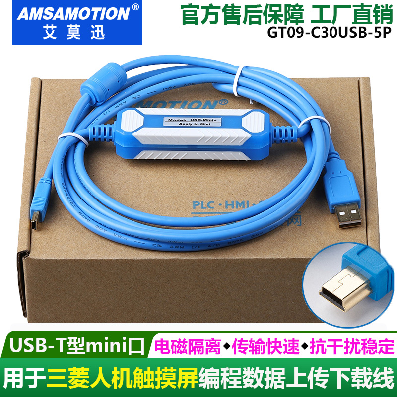 Applicable Mitsubishi human-machine touch screen programming design cable GOT1000 data download line GT09-C30USB-5P