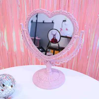 Princess soft girl heart pink love lace desktop double mirror makeup mirror heart shaped rotating makeup mirror
