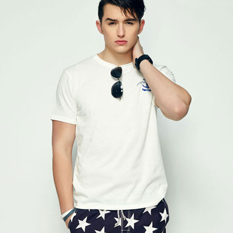 Loose solid color crew neck T-shirt men's sports pure cotton sea Soul T-shirt seaside resort beach slim short sleeve
