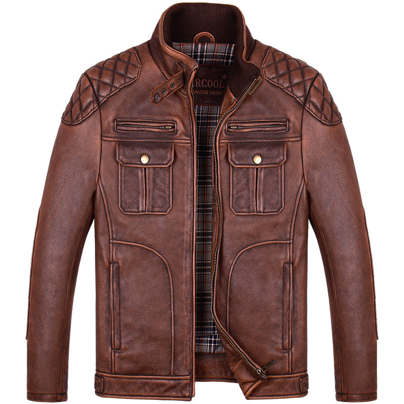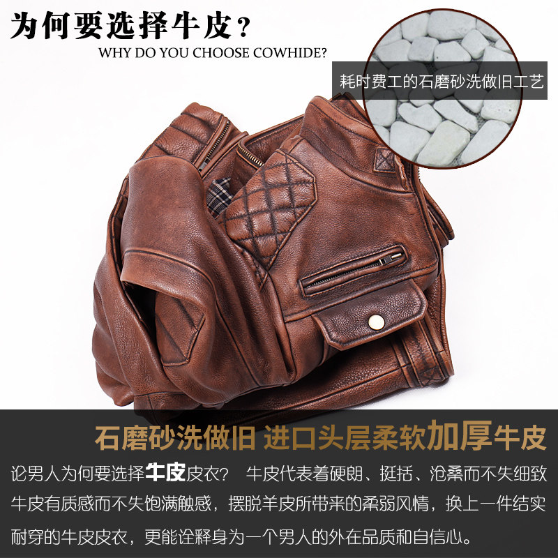Pick up missed handling genuine leather leather clothing male clothing headlayer Bull Leather Casual Locomotive version clip Kerch short collar short to make old leather jacket