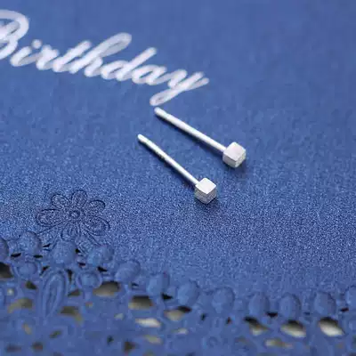 Small Z Youpin 925 sterling silver ear needle female brushed square sugar cube small ear needle simple temperament earrings do not need to pick when sleeping