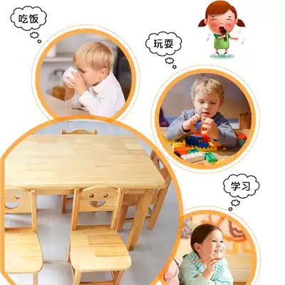 Kindergarten table and chair Solid wood oak table Six-person table Special offer small chair Children's desk Learning table Game table