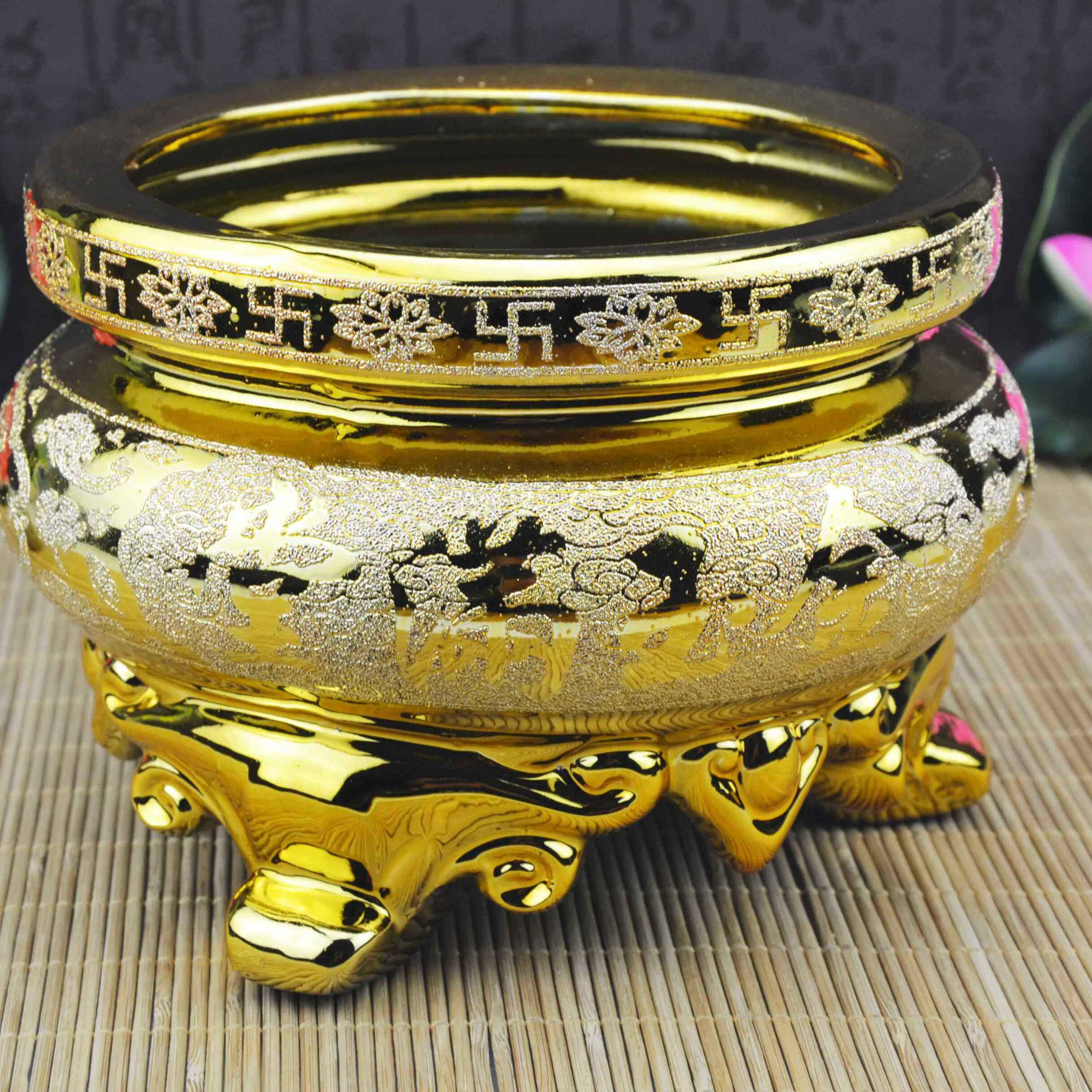 Sand golden offering Jinsha ceramic incense burner bowl incense bowl dedicated to living room family with three-legged incense burner