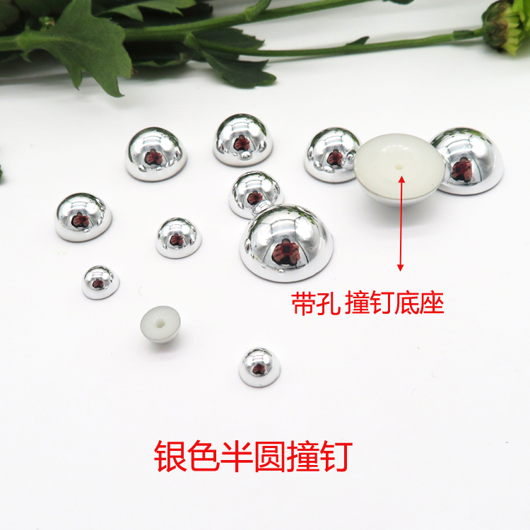 Silver 6mm semicircle pearl with hole Nail 10 silver 8mm semicircle pearl with hole Nail 10 silver 10mm semi-circle pearl with hole Nail 10 silver 12mm semi-circle pearl strap