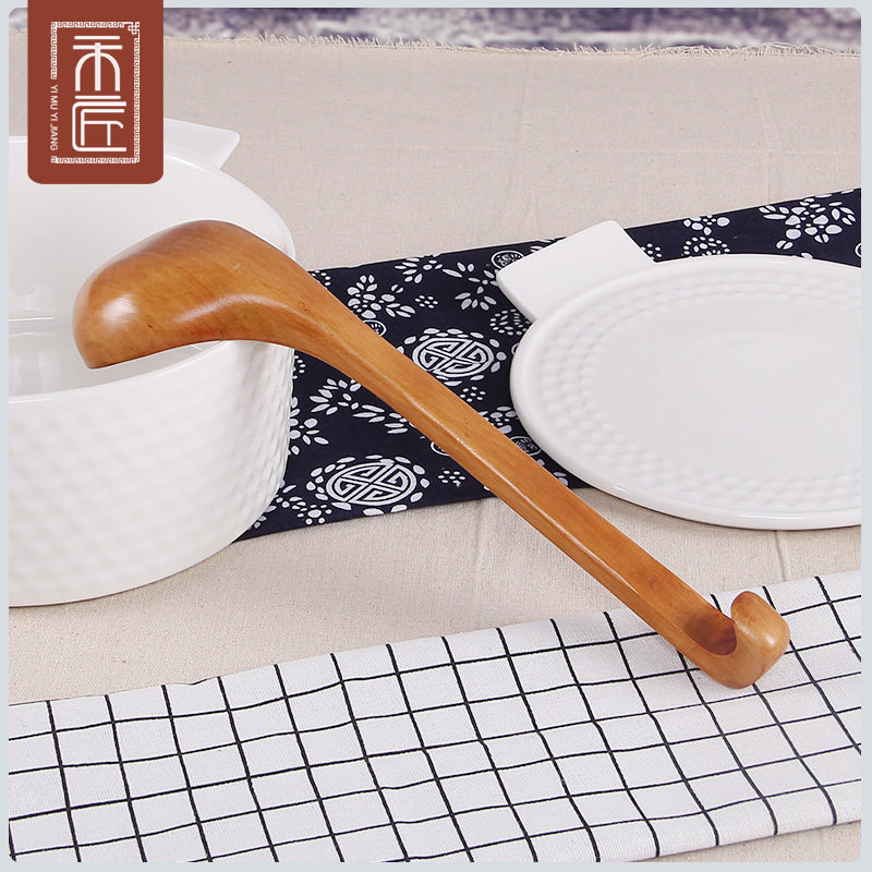 Mason new product soup spoon retro solid wood large number with hook long handle hot pot spoonful of soup cooking congee kitchen cooking tools