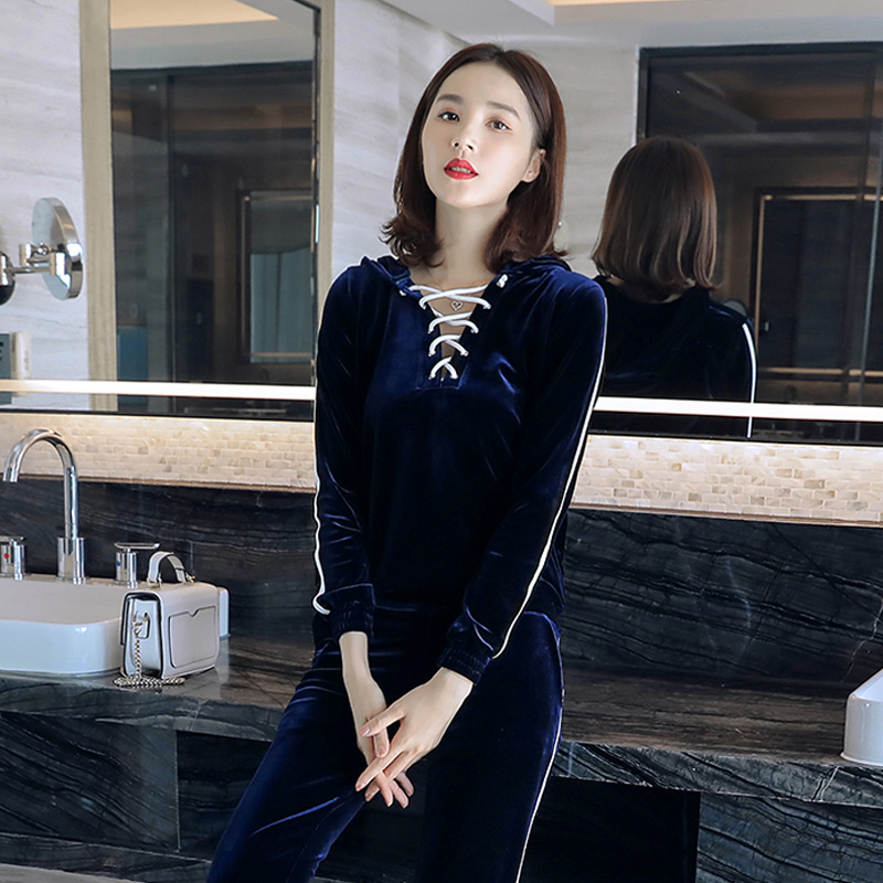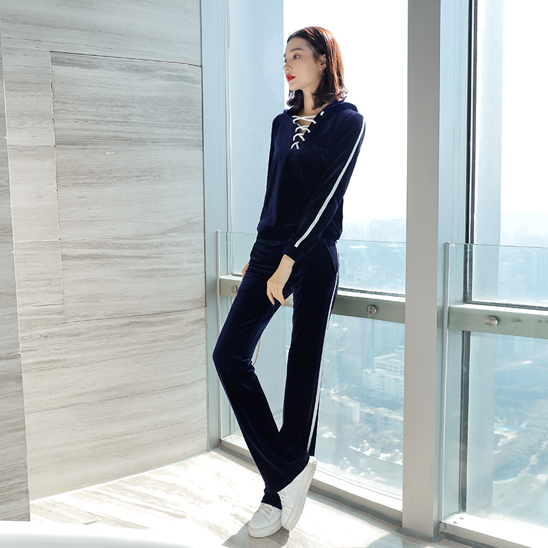 European station women's spring and autumn net red sweater with the same hooded gold thread not velvet fashion sports running clothes casual suit