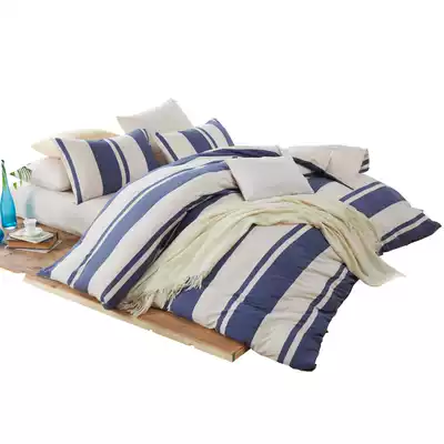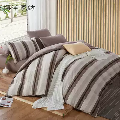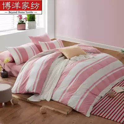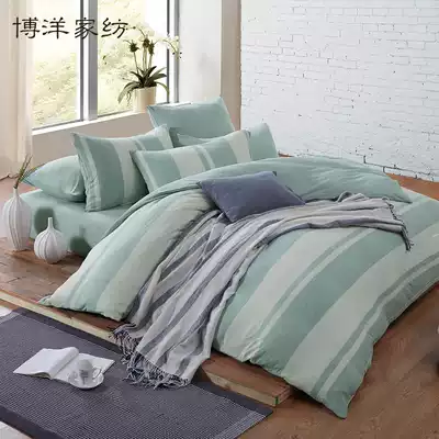 Boyang home textile cotton pure cotton four-piece Tianzhu cotton knitted cotton stripes Simple and fresh quilt cover Japanese bed Kasasa style