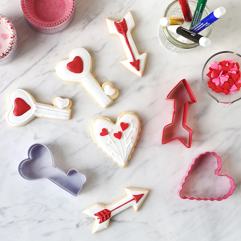 American Wheelton Wilton heart-shaped arrow key biscuit mold Three sets of sugar cream turned sugar tool Valentine's Day