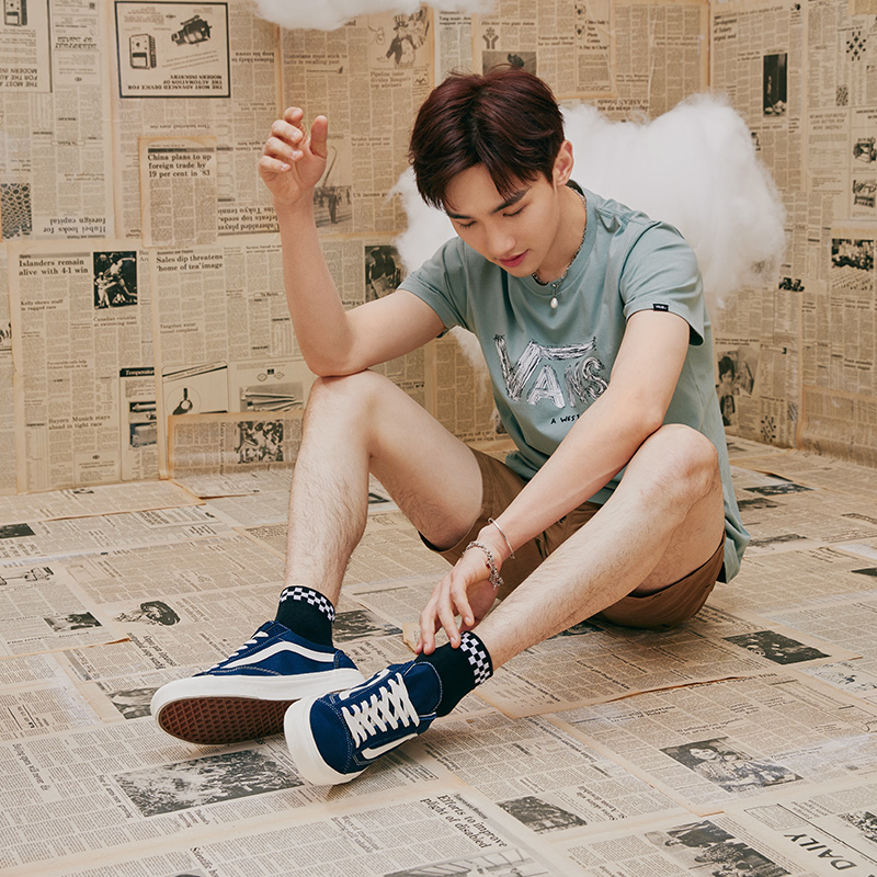 (Hot Season) Vans Vance official Style 36 Silent Blue American classic men's and women's board shoes
