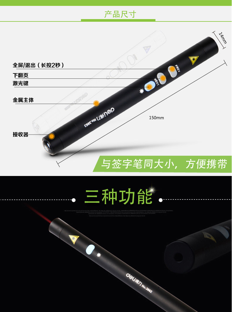 Promotional Deli PPT Laser Page Turning Pen 3863 Demonstrator Electronic Teaching Whip Multimedia Teaching Remote Control Pen