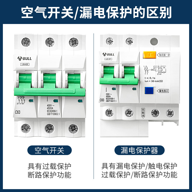 Leakage protector BULL bull leakage protector 1p household 32a switch 40a Small 63a circuit breaker Single-stage air conditioning switch