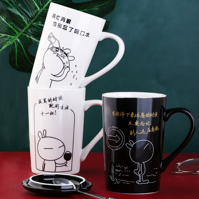 Cup ceramic breakfast mug cute men and women cute students creative personality trend milk coffee cup with lid spoon