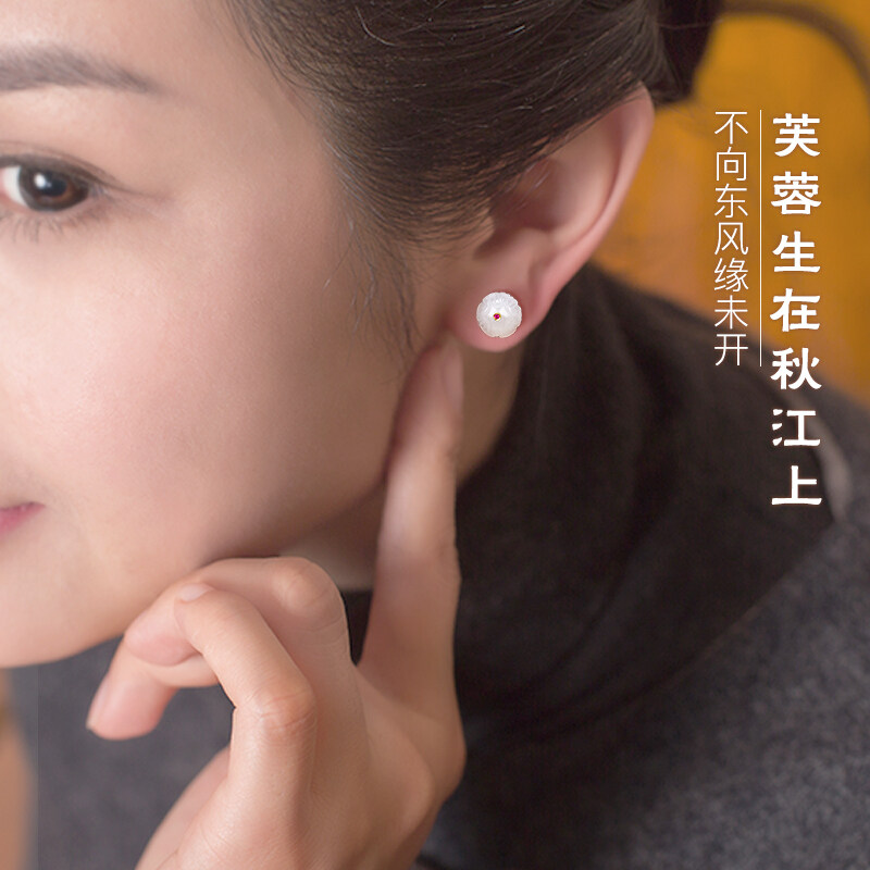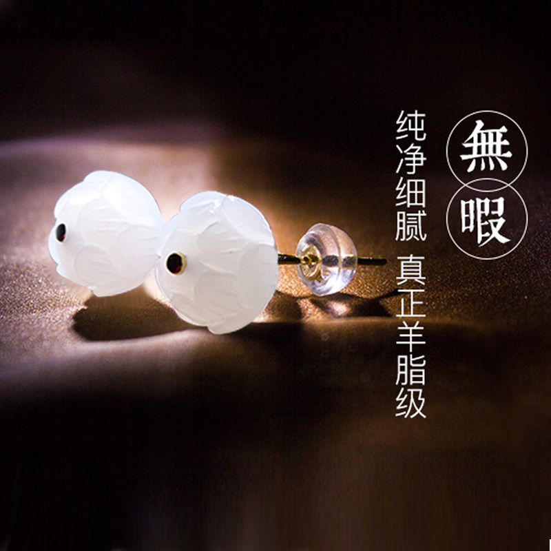 White jade family Hetian sheep fat jade earrings jade earrings jade earrings spring and summer earrings simple and elegant temperament