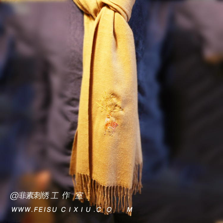 Deer Bao designs Sue Embroidery elk double - sided embroidery shawl warm cashmere scarf Christmas gift