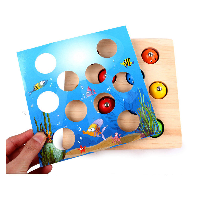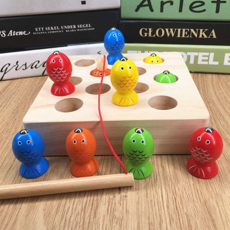 Child Fishing Magnetic Puzzle Stereo Wooden 0-1-2-3-year-old baby catching fish game with baby boy toy girl