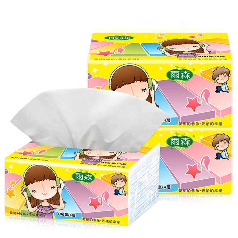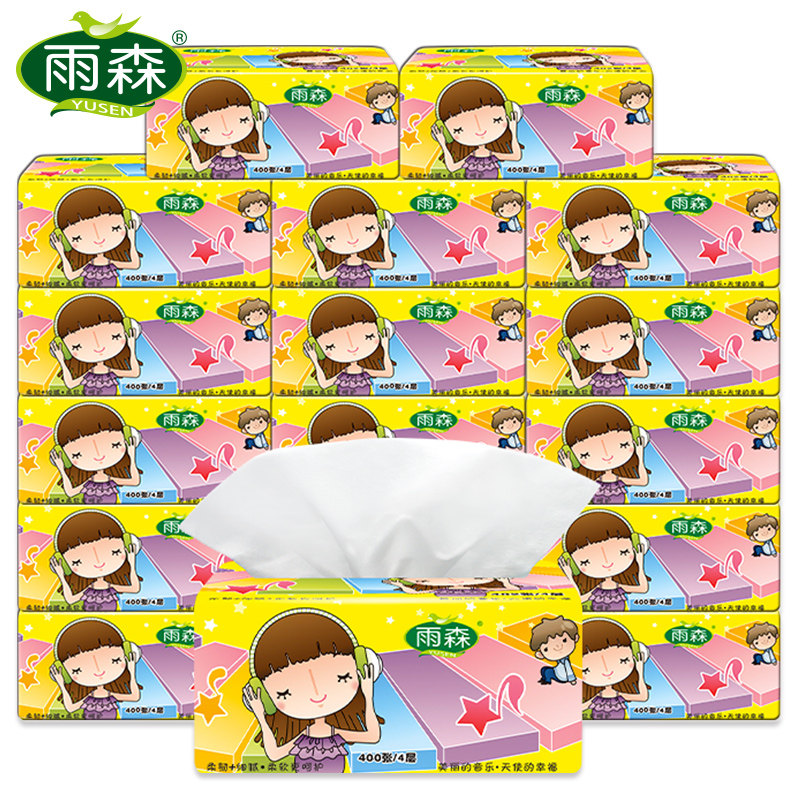 Yusen happy note removable toilet paper baby baby can use fragrance-free soft pumping facial tissue 4 layers 18 packs multi-province