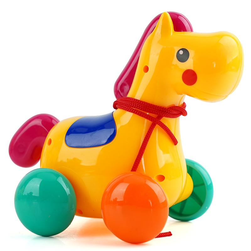 Dragging duckling pony pull cord with rattle multifunctional children pull rope puppy baby toddler pull toy