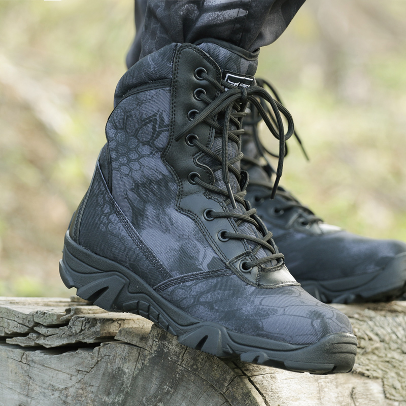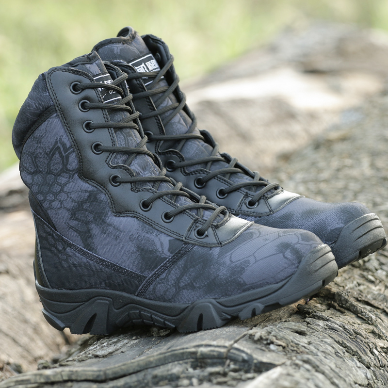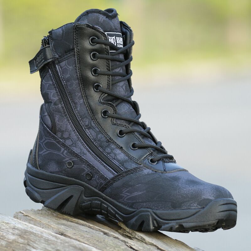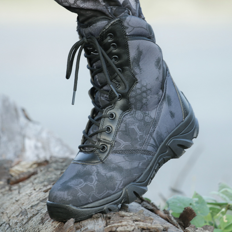 Dunlang outdoor black python camouflage boots men's and women's new high-barrel tactical boots land boots mountaineering boots breathable
